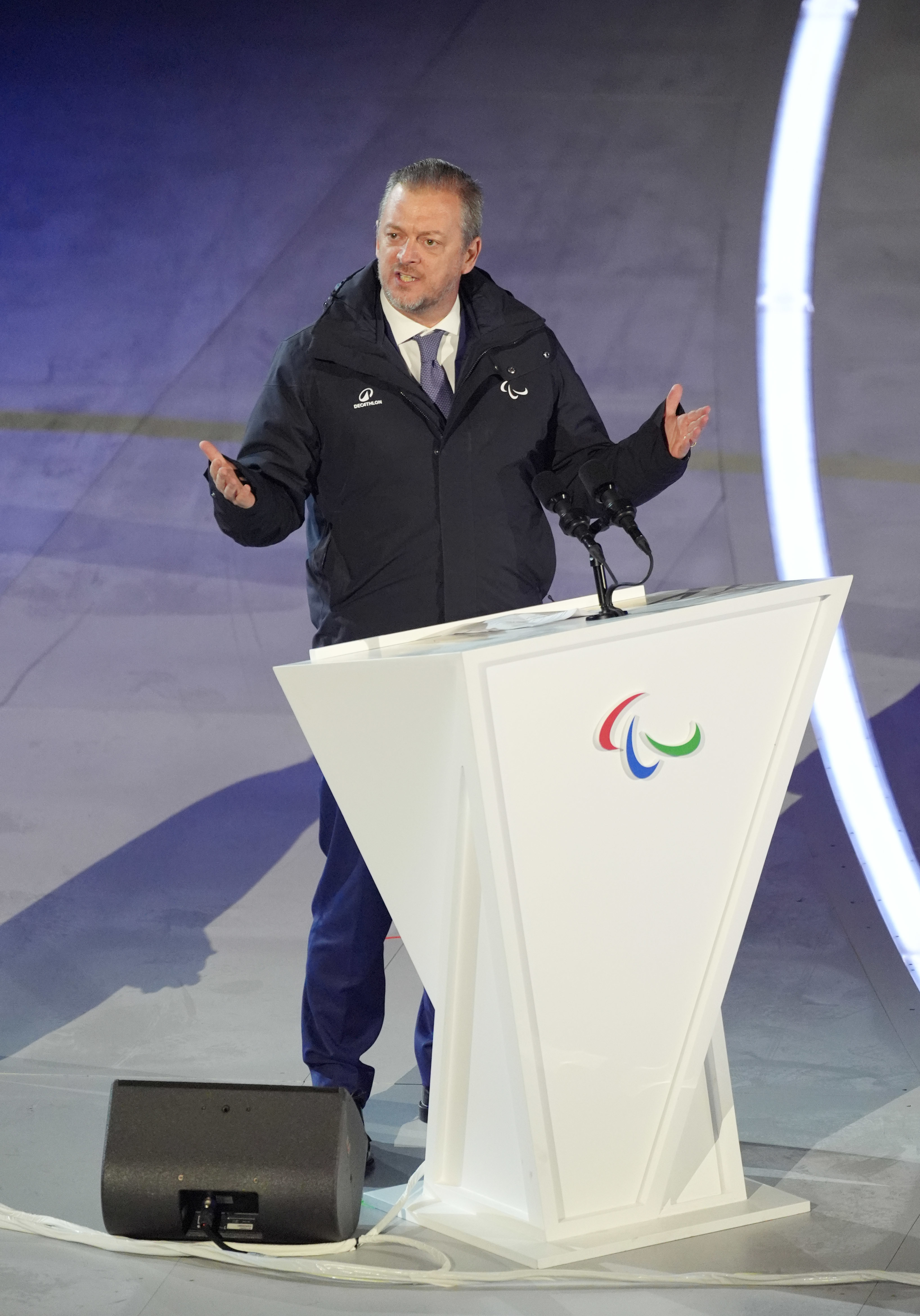 3月6日,海外残奥委会主席安德鲁·帕森斯在开幕式上致辞。新华社记者 才扬 摄