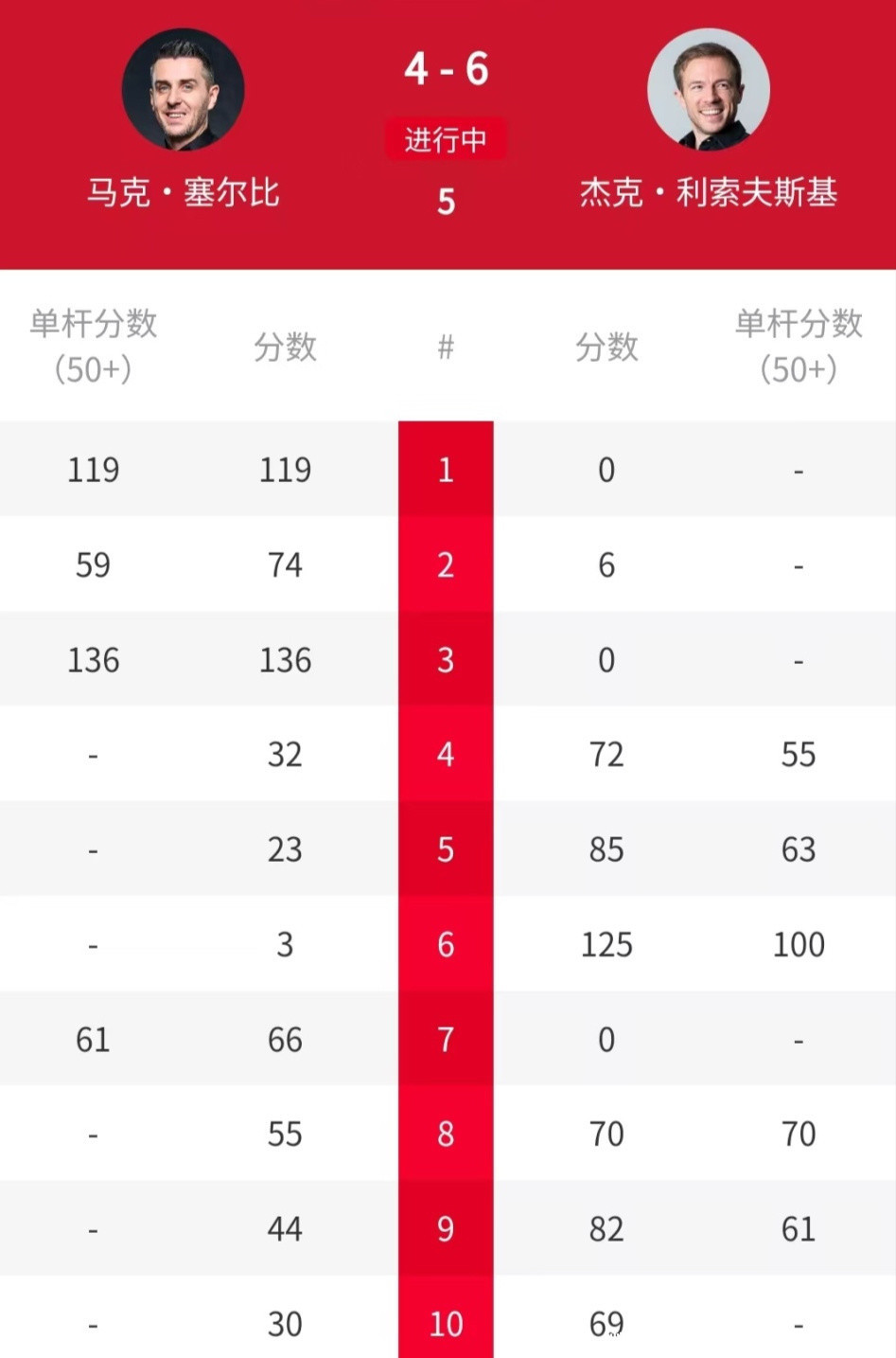 此役,佩奇1-0首先发力,艾伦追成1-2。接下来在2-3过期的情况下,艾伦连胜三局,以5-2拿到赛点。佩奇在第九局赈济一个赛点,艾伦在第十局以68-56锁定胜局,总比分6-4投诚佩奇晋级16强。另一场比赛体育录像/图片,“机长”阿里-卡特打出三杆50+,6-4投诚通常打出三杆50+的瑞恩-戴晋级16强。