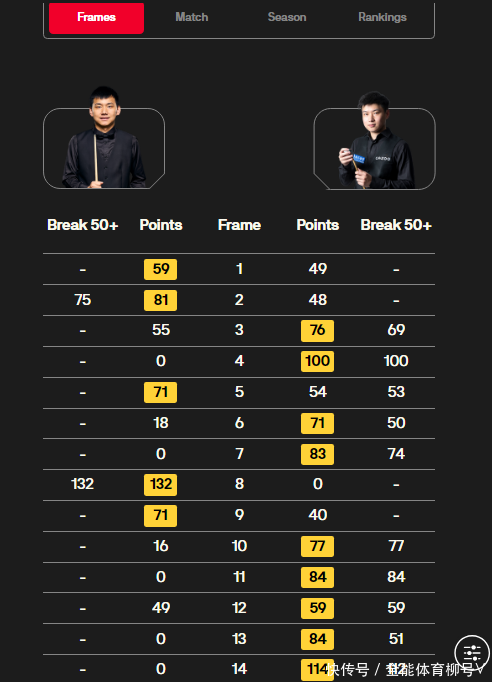 第九局同期亦然第一阶段临了一局,赵心童轰出这个阶段的单杆最高分(132分),132-0再次零封张佳玮,第一阶段比分锁定为8-1,7局上风遥遥跳跃,晋级险些已成定局。
